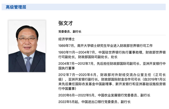 记者留意到,和他的上一任杨少林一样,张文才也曾在财政部工作多年。中国进出口银行官网信息显示,张文才在1989年7月从南开大学硕士研究生毕业后,进入财政部世界银行司工作。从工作履历看,张文才与国际主流多边金融机构打交道的经验非常丰富。