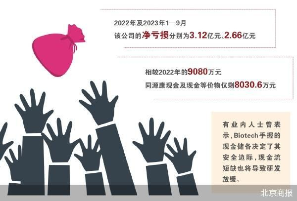 由于尚未有产品实现商业化销售,同源康仍在亏损。2022年及2023年1—9月,该公司的净亏损分别为3.12亿元、2.66亿元。相较2022年的9080万元,同源康现金及现金等价物仅剩8030.6万元。有业内人士曾表示,Biotech手握的现金储备决定了其安全边际,现金流短缺也将导致研发放缓。