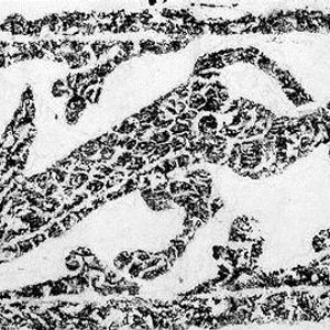1987年,在河南濮阳西水坡仰韶文化遗址出土了距今约6400年的龙虎图案,该图案由蚌壳精心摆塑,其中虎形图案居左,龙形图案居右,龙头北面东向,昂首弓背,四足长尾,尾呈摇摆状,宛如遨游于苍穹之中。