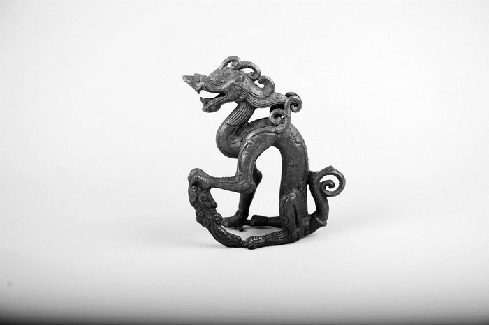 战国时期,五方之民共天下的格局逐渐稳固;秦汉时期,统一多民族国家正式形成。这也为不同地域的龙文化提供了更多相互交流、相互借鉴的空间,在此基础之上,龙的形象也逐渐趋于统一,即如东汉思想家王符所说:“角似鹿,头似驼,眼似兔,项似蛇,腹似蜃,鳞似鱼,爪似鹰,掌似虎,耳似牛。”此时“龙”的形象也被更广泛地运用在各种器具之上。