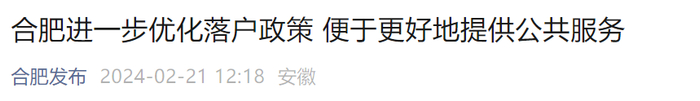 2月21日,据“合肥发布”消息,合肥召开了优化落户政策专题会,进一步优化落户政策。