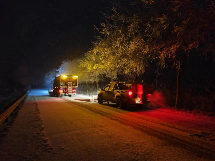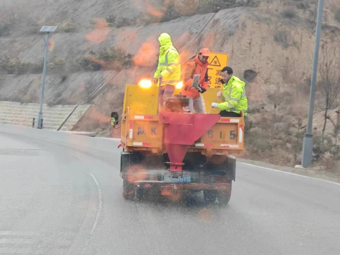 榆靖分公司在全线范围内采用机械为主,人工为辅的方法迅速开展除冰、除雪作业,对结冰路段、坡道、弯道、匝道和桥面加大撒布融雪剂,尚未结冰路段进行预防性撒布融雪剂,增加人员、增加频次,采取多轮除雪作业。并积极与高速交警部门对接,配合交警在重点路段实施交通管制,在主线分流车辆至就近收费站下高速,避免发生更多交通事故,安全路产巡查人员对事故、受困车辆进行及时救助。(陈儒智)