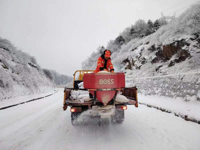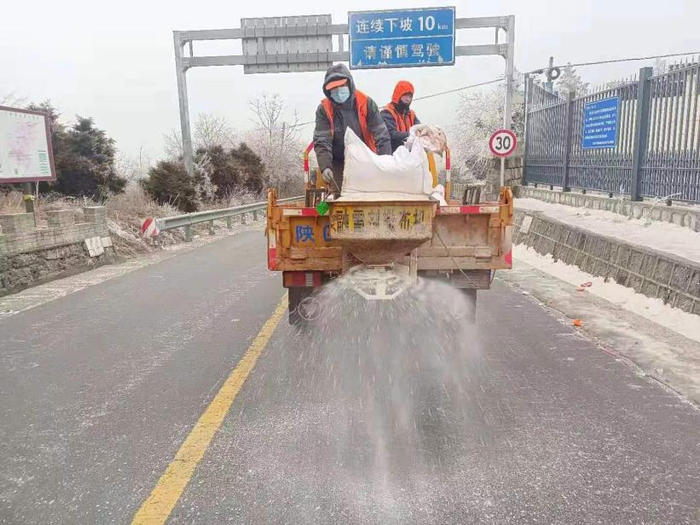 为保障公路畅通,宝鸡交通人以雪为令、闻雪而动,对沿线积雪结冰路面、急弯陡坡、交叉道口等重点路段开展除雪除冰保畅行动。(宋妮娜)