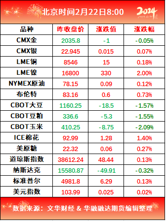 2月21日国内不锈钢现货具体报价如下:天管、酒钢304/2B冷轧主流切边报价14300-14500元/吨,张浦报14450-15000元/吨,民营钢厂宏旺、甬金毛边基价报13900-14300元/吨,报价较上一日无变化,对2405合约平均基差485(+15)。高镍铁主流成交价930(+0)元/镍,出厂含税;高碳铬铁报价主流报8650(+0)元/50基吨(数据来源:Mysteel)。上期所注册仓单量82456吨(-243吨)。