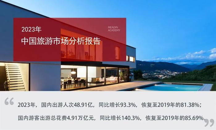 2023年,是三年“口罩因素”后经济恢复发展的一年,对旅游业来说是不同寻常的一年。全年国内旅游市场高潮迭起、活力满满、强势复苏,据文旅部数据显示及测算:2023年,国内出游人次48.91亿,同比增长93.3%;国内游客出游总花费4.91万亿元,同比增长140.3%;国内出游人次和国内旅游收入分别恢复到2019年的81.38%、85.69%。出入境旅游方面,据中国旅游研究院数据,2023年我国出入境旅游人数超过1.9亿人次,较去年增长2.8倍以上。
