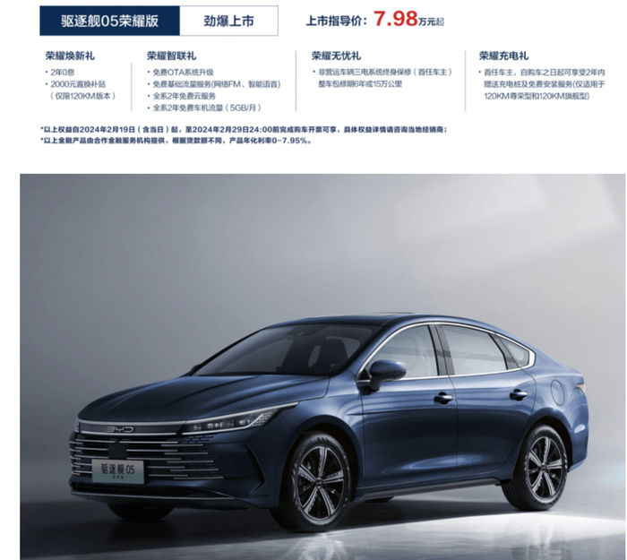 为了稳住基本盘,同时也为了扩大增量,比亚迪推出了荣耀版系列,算是“变相”地降价。根据盖世汽车研究院预测,荣耀版上市后,将助推秦PLUS月销量突破5万辆,继续蚕食轩逸、朗逸等燃油车份额。驱逐舰05方面,今年销量有望增加1万-1.5万辆,年销量突破10万辆。