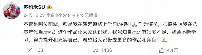 《我在八零年代当后妈》虽无豆瓣评分,但基于社交平台的网友评价,集中体现在“剧情超爽,双商在线”、“男女主演技自然,服道化复古有年代感”,还有网友表示“之前没有看过穿越到80年代的偶像剧”,对于这类题材感到新鲜。另一个让千万网友入坑的理由在于男女主角的颜值,在这个内娱丑男演现偶古偶动不动引起争议的当下,看似霍建华与肖战结合体的男主,遭到了网友的追捧,虽然其私生活有所争议,但也阻止不了男主一条关于“像某位前辈”的感谢微博,点赞数高达4万多。