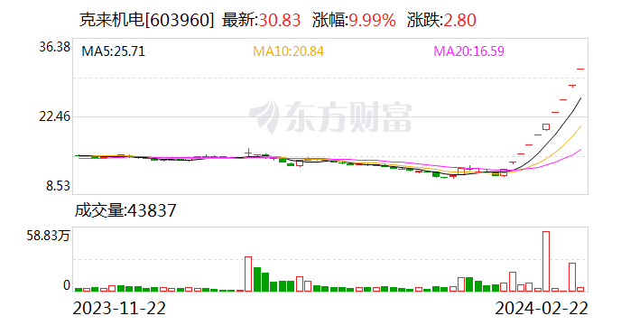 克来机电斩获10连板累计大涨160% 公司提示风险