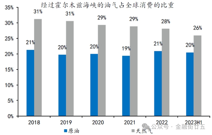 图7:经霍尔木兹海峡的油气占全球消费比重