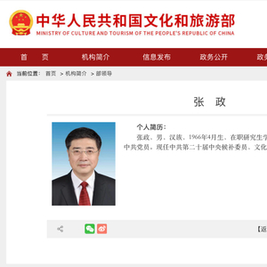 据文化和旅游部官网“部领导”栏目显示,张政已任文旅部党组副书记、副部长。张政此前为河北省委常委、宣传部部长,他是第二十届中央候补委员。