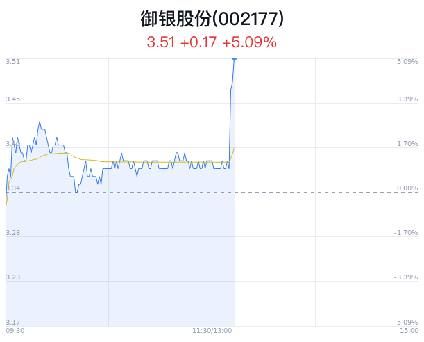 02月22日,御银股份(002177)股价大幅上涨,截至13点12分,御银股份上涨5.09%,报3.51元/股,成交7562万元,换手率2.93%。