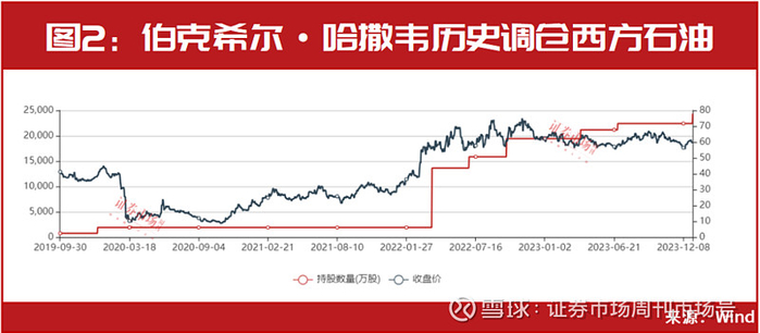 回顾来看,巴菲特对于雪佛龙和西方石油进行了多轮调仓,而“态度”却有些不同。从历史持仓来看,巴菲特曾于2020年三季度建仓雪佛龙,在此之后进行了连续增仓,而在此后多个季度均进行了减仓,如2022年四季度~2023年三季度(见图1)。