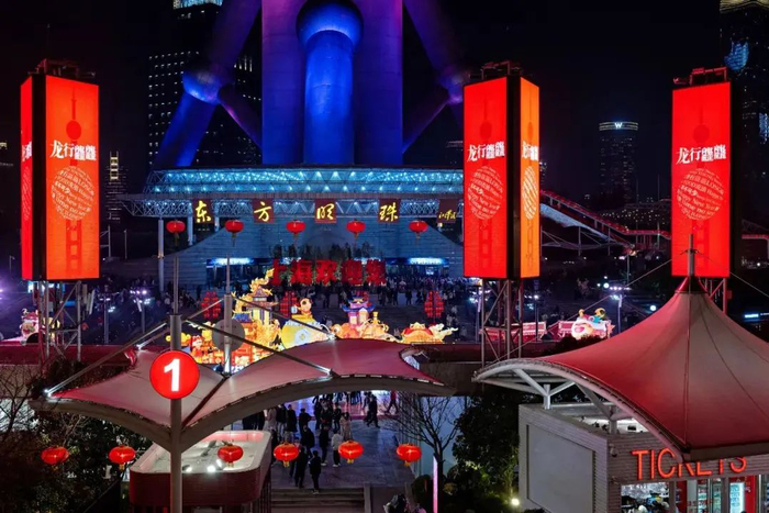即日起至2月24日,特别制作的《珠光龙影 华灯鱼舞》22米超大非遗艺术灯景惊喜点亮,市民游客可免费进入东方明珠城市广场打卡合影。