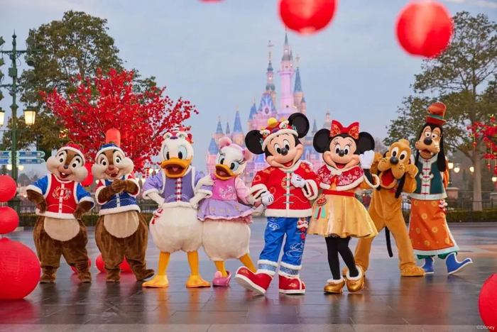 新年的上海迪士尼乐园张灯结彩,火红的灯笼和中国结布满了园区,迪士尼的朋友们也都换上了龙年新装,邀请大家来过新年。