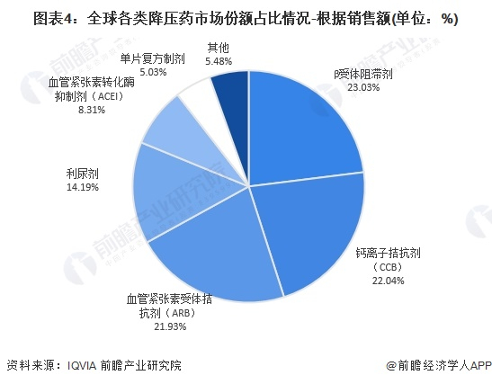3、全球降压药市场上β受体阻滞剂占比最高