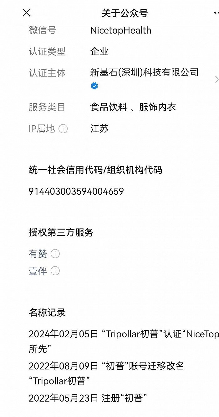 此外,初普微信公众号于2月5日更名为“NiceTop所先”,原先的相关推文已经全部清空,不过,账号经营者仍然是新基石(深圳)科技有限公司。目前,“NiceTop所先”显示“品牌公众号升级中”。笔者注意到,关注公众号后会向粉丝推送初普视频号的链接,视频号显示,在去年8月20日官宣全球品牌代言人之后便停止了内容更新。