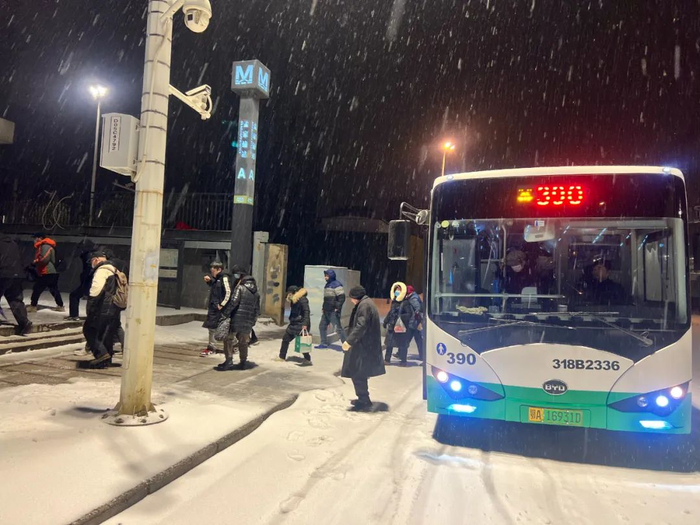 2月22日清晨,为了保障大雪天气下市民的正常出行,武汉公交集团第三营运公司390路公交车开通了短途摆渡车服务,实现公交与地铁的无缝接驳。