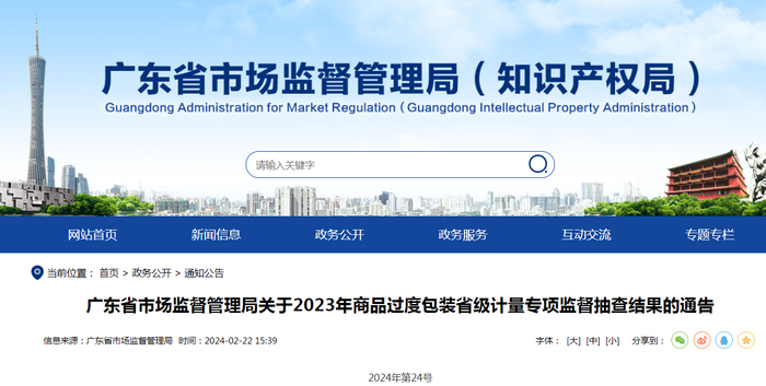 广东省市场监督管理局关于2023年商品过度包装省级计量专项监督抽查结果的通告