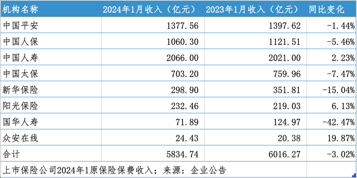 2024年首月保费出炉:8家公司收入下滑3.02%,寿险、产险表现分化|月度保费观察(1月)