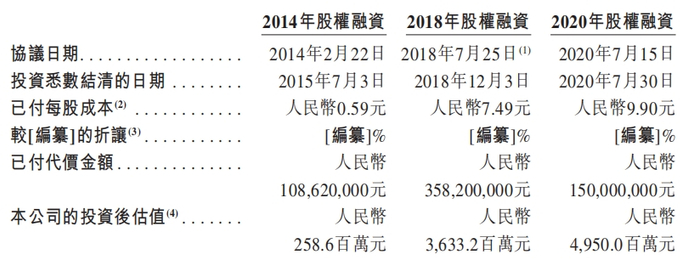 招股书显示,2014年,陆道培医疗进行了第一轮股权融资,乳源县飞尚以1.09亿元认购其2311.1万元注册资本,增资价格为4.7元/注册资本,对应公司估值为2.59亿元。