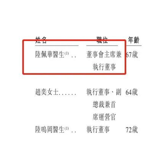 目前,担任陆道培医疗董事会主席的陆佩华是创始人陆道培之女、陆晓丹的姑母,其同样是一位资深的血液病及肿瘤学专家,曾在美国圣何塞医疗集团担任过30余年的肿瘤专科医师。