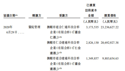 招股书显示,道合仁通为医院管理于2020年6月进行股权重组时设立的公司之一,同期设立的还有仁合达通、道合达通。彼时,医院管理曾将所持陆道培医疗的317.35万元注册资本、282.61万元注册资本、134.99万元注册资本以低价7.32元/注册资本分别转让予道合仁通、仁合达通、道合达通。