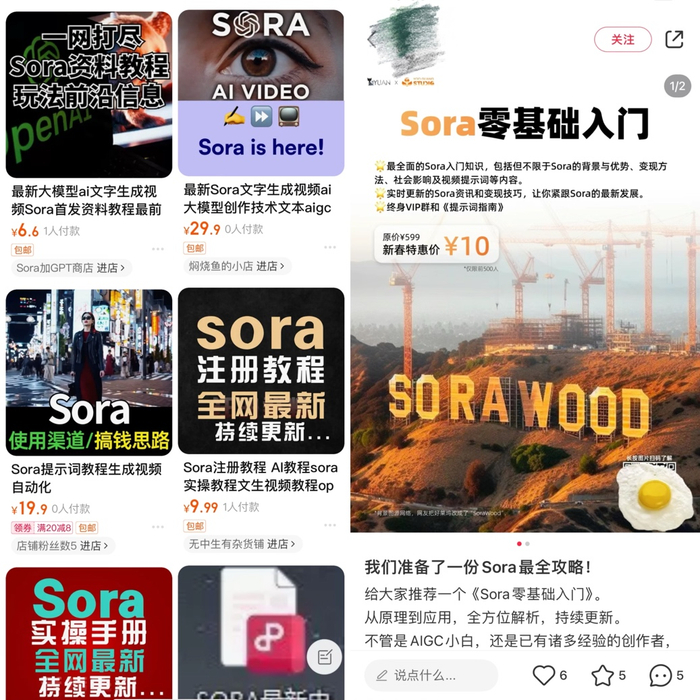 最近一段时间以来,Sora模型的发布引发了人们在AI时代的普遍焦虑情绪,也让相关的AI课程大火。记者以“Sora教程”在多个电商平台上搜索,层出不穷的相关教程映入眼帘。