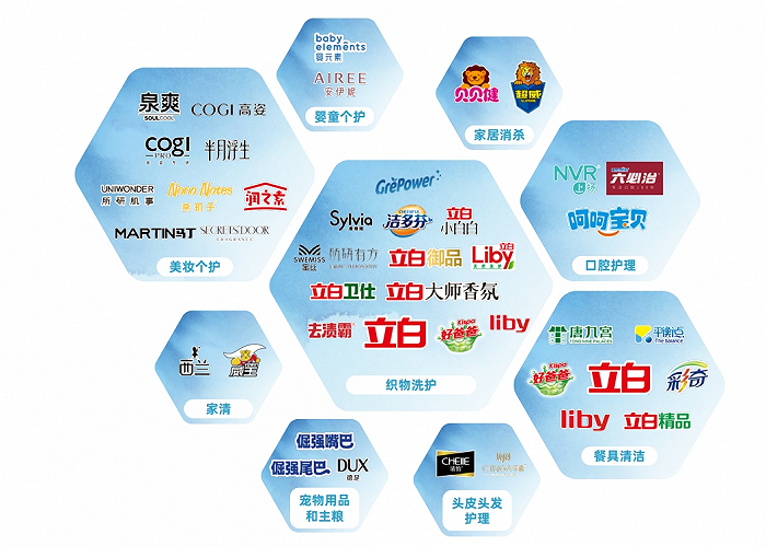资料显示,立白已在全国拥有8大生产基地、30多家分子公司,洗涤剂销量全国第一、世界第四,拥有“立白”“好爸爸”“蓝天六必治”等织物洗护、餐具清洁、口腔护理等知名品牌,也有小白白、清怡、MISS蜜丝这样的新锐国货品牌……