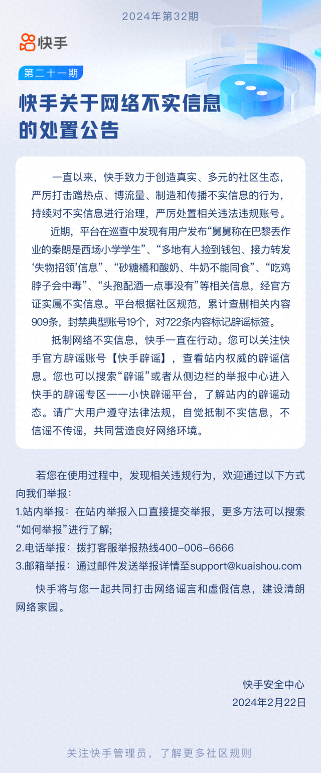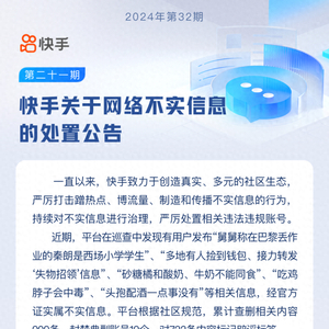快手封禁19个账号:发布“舅舅称在巴黎丢作业的秦朗是西场小学学生”等信息