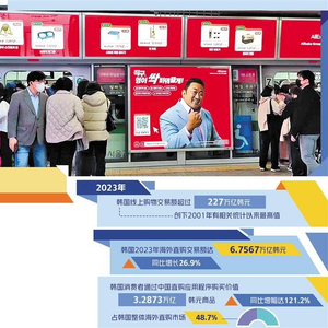 互联网时代,消费者购物的主要渠道正从线下走向线上,韩国也不例外。据统计,韩国2023年线上购物交易额超过227万亿韩元,创下了2001年有相关统计以来的最高值。特别是在高物价的大环境下,价格相对便宜的线上海外直购异军突起,中国跨境电商企业凭借“高性价比”和“低物流费”等优势,已占据韩国海外直购市场的近一半份额。