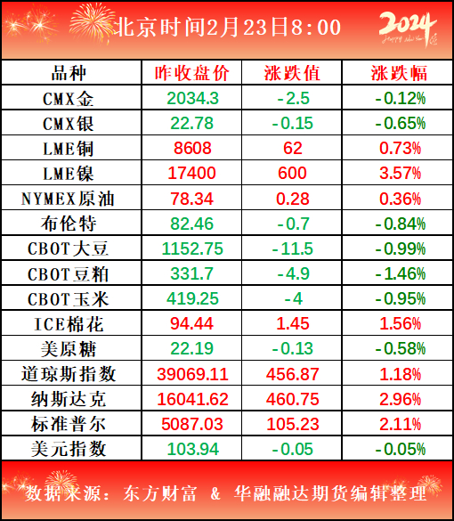 【观点】:宏观方面,国内央行2月20日下调5年期以上LPR为3.95%,较前值下行25个基点。此次调降,是历史上5年期LPR单次降幅最大的一次。释放稳经济的决心,但是侧面也反映出经济面临的压力。海外降息预期调整或告一段落,昨日晚间联储公开会议纪要中表述多数官员注意到过快隆息的风险,后续持续关注海外通胀以及就业市场表现,预计通胀粘性仍然较强,短期内部需求处于验证阶段,当前价格相对持稳在68800附近。