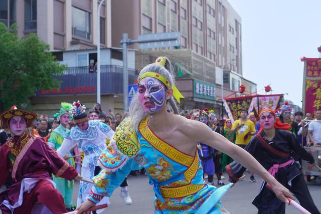 擎台阁选村中活泼秀丽的童男童女装扮古代英雄或戏曲人物,每桌演绎一曲经典故事,寓意龙腾盛世,福满人间。