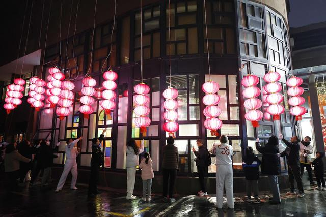 2月22日晚,上海,正月十三,长宁区非遗传承和保护中心广场举行“十三上灯十八落”传统民俗活动,上塔灯祈福,意为拔得头筹、抢得彩头,生活、事业蒸蒸日上。