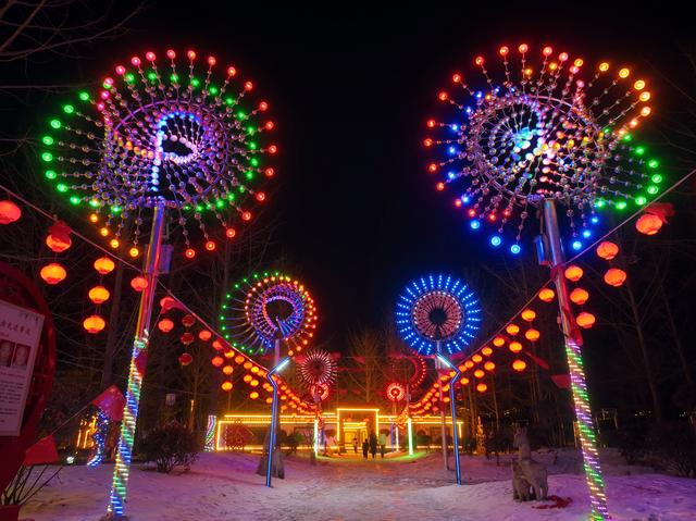 元宵节前夕,山东省临沂市郯城县马头镇民主街银杏公园内的“铁艺花灯”璀璨夺目,吸引众多游人前来观赏。据了解,“铁艺花灯”是由不锈钢片、钢球制作而成,运用电能和光能技术,让钢球和花瓣变换不同的色彩和造型,像一个个五颜六色的花灯。