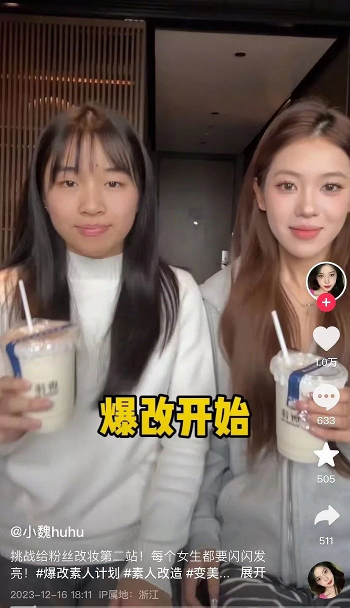 爆改之所以能够在拥挤的美妆赛道中突出重围,离不开化妆师兔子对短视频传播规律的精准把控。