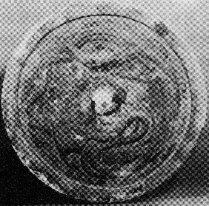 图十四-1 洛阳龙泉沟西邙山235号北宋壁画墓云龙镜(洛阳市第二文物工作队:《洛阳邙山宋代壁画墓》,《文物》1992年12期)