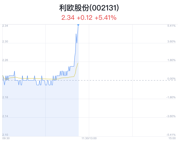 02月23日,利欧股份(002131)股价大幅上涨,截至11点15分,利欧股份上涨5.41%,报2.34元/股,创近2月新高,成交3.29亿元,换手率2.49%。