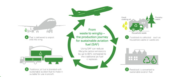 SAF由废弃的动植物油脂、油料、使用过的食用油、城市生活垃圾和农林废弃物等制成。相比于传统的石油基燃料,SAF全生命周期可实现最高达85%的二氧化碳减排。