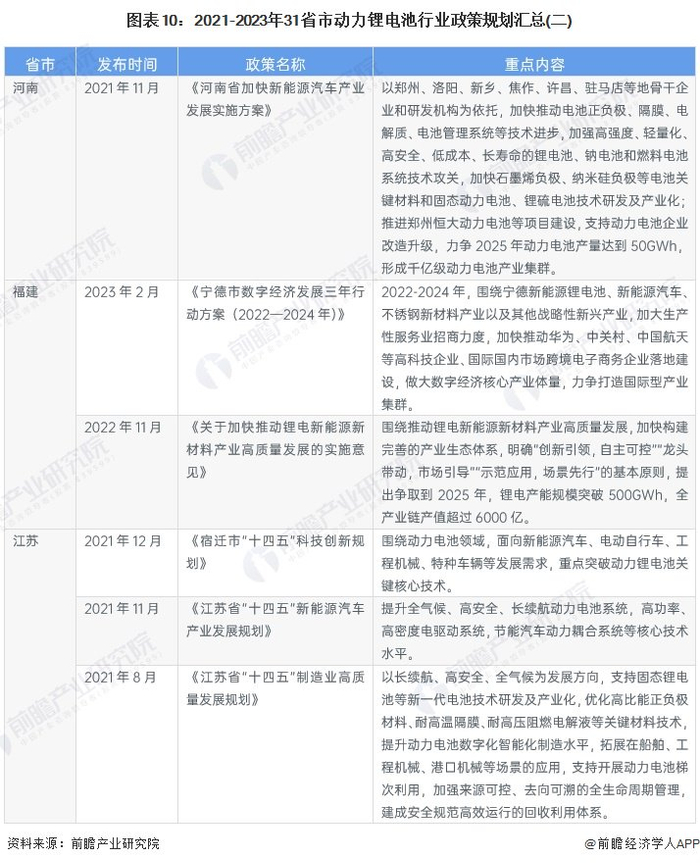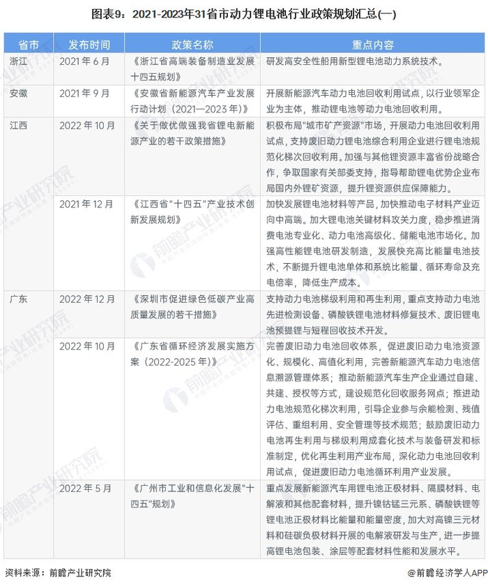 “十四五”时期,各省市动力锂电池行业规划涉及动力锂电池关键技术突破、促进船用动力锂电池发展及提升动力锂电池产业链产能等方面,具体政策规划汇总如下: