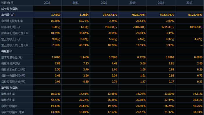 从披露的财务报表来看,2017至2022年公司业绩整体保持了相对稳定的增长,归母净利润从0.61亿元增长至1.45亿元,营收从4.22亿元增长至9.06亿元,5年复合增速分别为18.8%、16.5%。公司曾在经营评述中提到了2022年是机遇和挑战并存的一年,一方面从中短期看各国增加粮食产量确保本国粮食供给需求将进一步增强,从而带动农药、化肥的需求上涨。从长期来看,世界人口的增长、经济发展和生活水平的提高以及消费结构的变化,将会刺激农业的发展,间接带动农药行业的发展。另一方面农药行业虽因全球植保市场需求强劲保持了较为平稳的增长态势,但受到全球地缘冲突升级,商品市场跌宕起伏,全球经济预期不确定性等诸多因素的冲击和影响,农药企业高质量经营面临的不确定性和挑战增加。从行业发展趋势来看,我国农药行业正处于产业结构调整和转型时期,行业整合加速,继续向集约化、规模化方向发展,拥有产业链一体化的企业更具竞争优势。