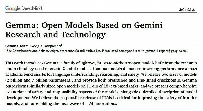 与Gemini发布时一样,谷歌此次也同步公开了Gemma的技术报告。
