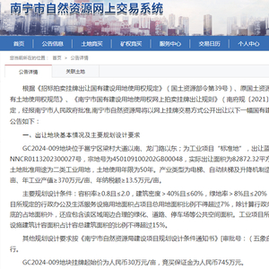 南宁市挂牌出让一宗工业用地 起始价人民币30万元/亩