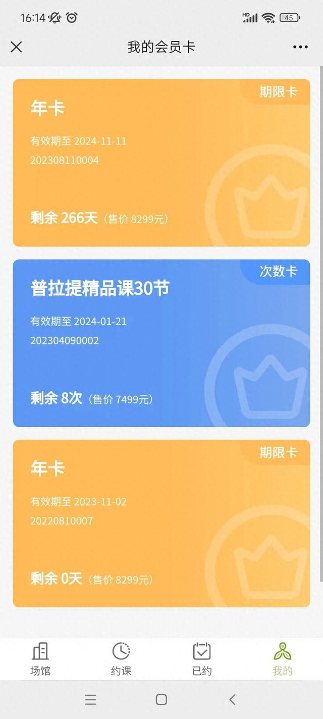 杨女士告诉记者,她从2021年7月起,在小黑裙瑜伽上海虹桥星座店办理了两张月卡,觉得训练效果不错,对于老师们的水平也很满意。2023年4月,王女士趁瑜伽馆搞活动期间购买了一张有效期至2024年11月11日的年卡,和有效期至2024年1月21日的“普拉提精品课30节”课程。