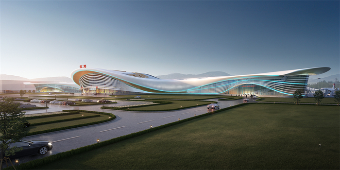 宝鸡市发改委工作人员介绍说,出发和到达大厅位于航站楼左侧,正立面采用流动红色曲线造型,灵感来源于古丝绸之路和宝鸡的“红色基因”,为南来北往的乘客展示璀璨的宝鸡文化。客运功能区和货运功能区分别在航站楼的两端,分别以“凤”造型和“凰”造型为设计灵感,取自西汉文人司马相如所作《凤求凰》中“凤兮凤兮归故乡,遨游四海求其凰”之意,充分表达秦人秦地的热情好客以及美好祝愿。而客运和货运功能区,通过一道玻璃景观带连接,这道玻璃景观带呈蜿蜒相通状,设计灵感来自九曲黄河,以及贯穿宝鸡市的渭河。