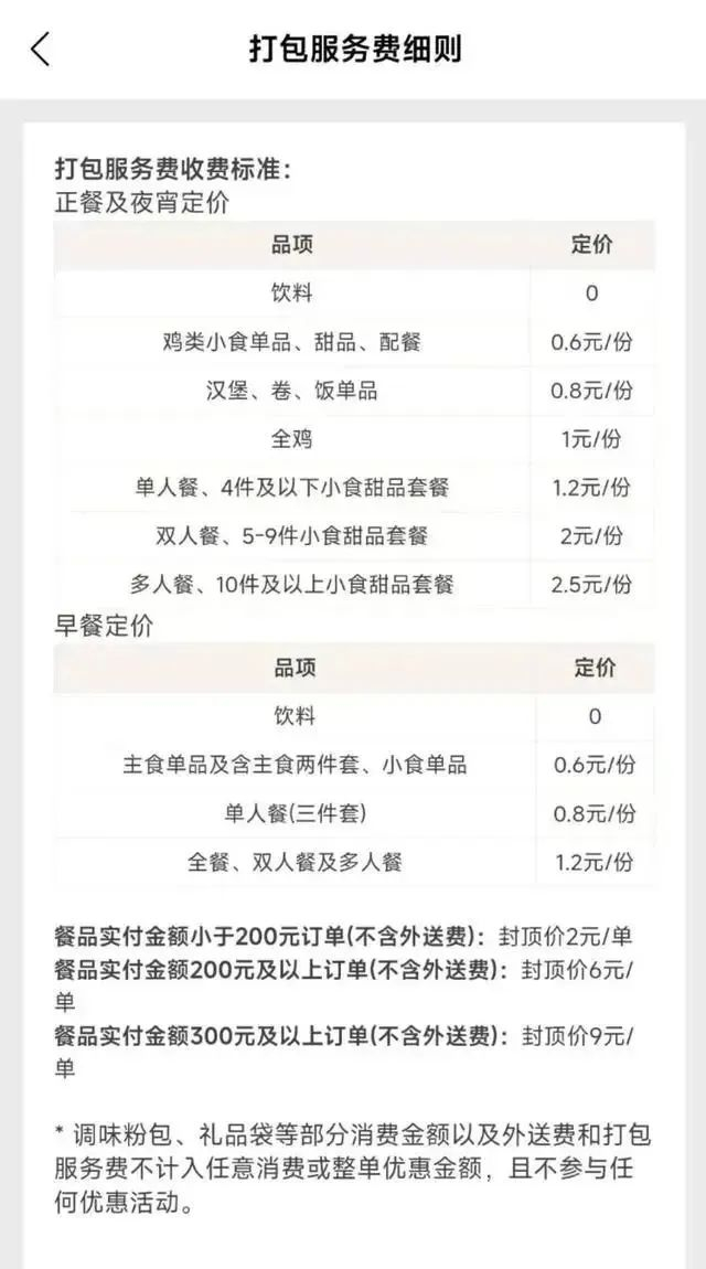 以肯德基为例,实际上,早在2023年底的时候,肯德基收取打包费的消息就曾引发网友争议。有网友算了一笔账,表示“配送费6元,打包费9元,还没吃上15块钱就没了!”对此,肯德基官方客服称,收取打包费主要是“为了保障外送商品的品质,肯德基会安排专人打包,并酌情收取一些打包费”。难道折扣化的代价,最终要消费者买单?