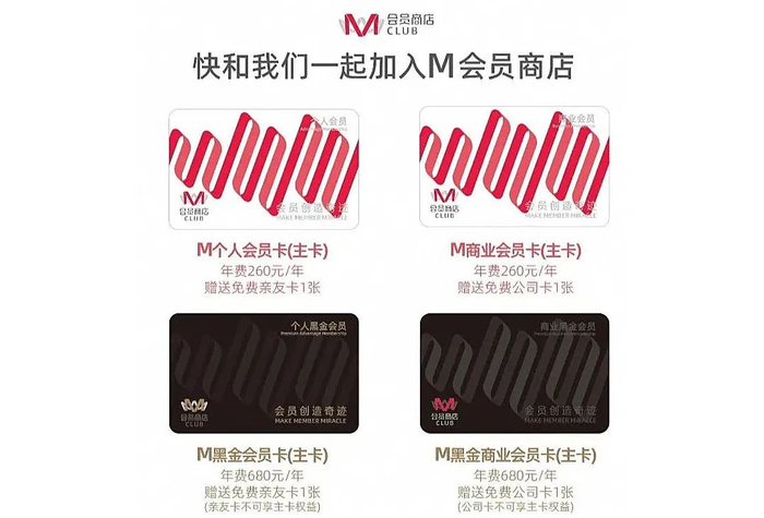 M会员店采用仓储式付费会员制,会员卡价格与山姆一样,260元/年