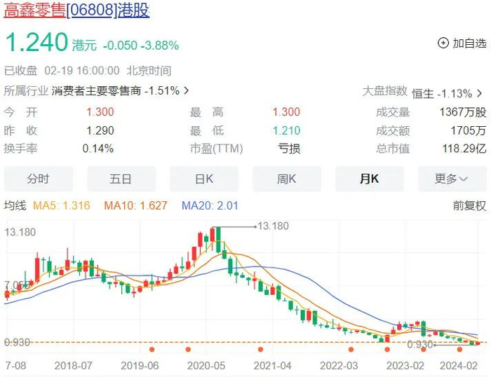 减持传言,一度推动高鑫零售股价上升。截至2月19日收盘,这家650亿资产的零售巨头,市值为118.3亿港元