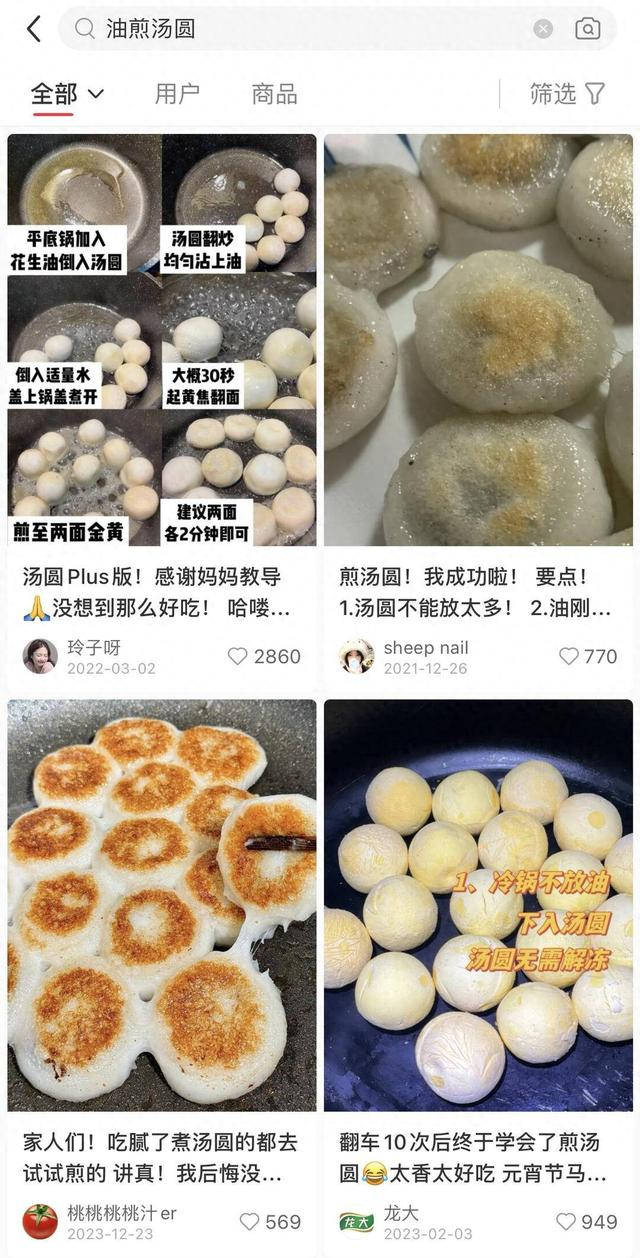 “平底锅加油导入汤圆,翻炒至均匀沾上油,30秒焦黄后翻面……”“煎汤圆”顾名思义与传统水煮汤圆相比多了油煎、油炸的过程