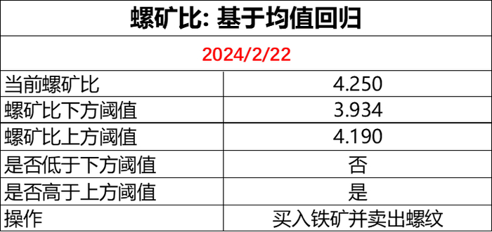 近期螺矿比及卷矿比突破其上方阈值(22日均值+1.645*标准差),上方阈值突破从均值回归角度出发或代表铁矿短期内下行驱动将减弱,可以考虑围绕比价进行相关操作。