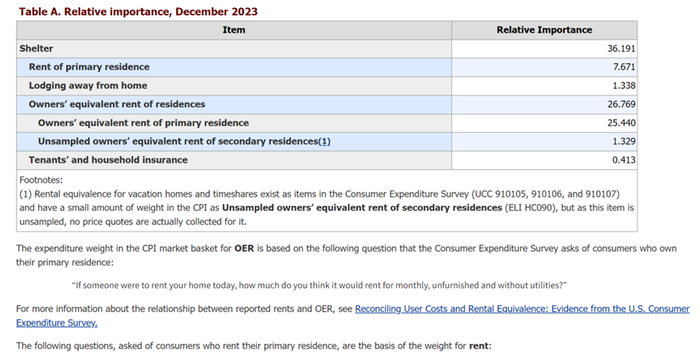 导致本次通胀数据不乐观的原因很大程度上归于OER (Owners’ equivalent rent of residences) 的大幅变动及季节性调整影响。由于OER数据存在很大的主观性,在业主预计美国地产复苏而增加其预期房租的情况下,OER数据大幅拉升,而OER数据的重要性非常显著,所以对CPI产生了明显影响。